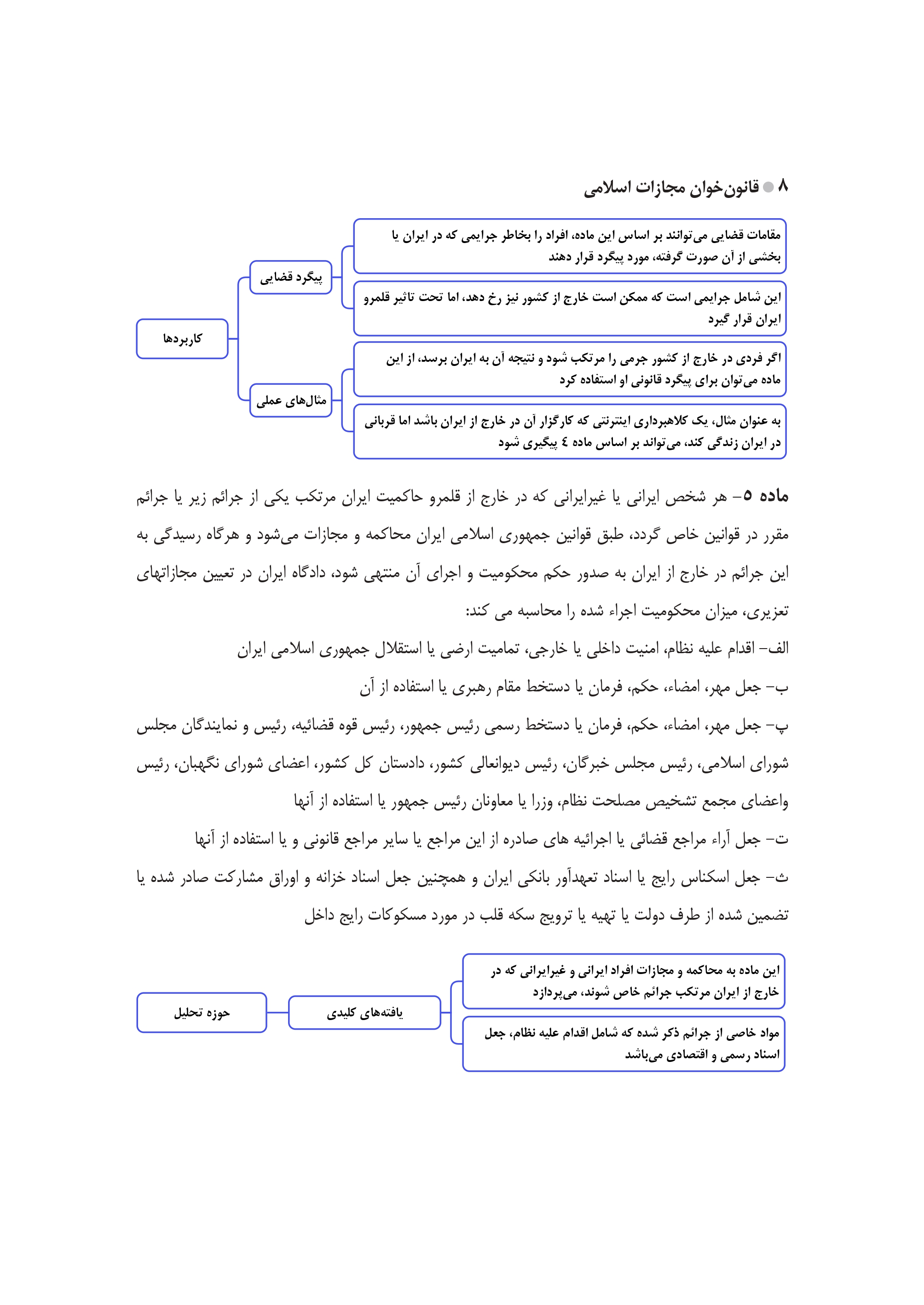 📘 معرفی کتاب قانونخوان مجازات اسلامی | ویژه آزمونهای وکالت و قضاوتکتاب قانونخوان مجازات اسلامی یکی از جدیدترین آثار آموزشی در حوزه حقوق جزا است که توسط گروه علمی مکتوب آخر و با مدیریت اجرایی مونا سام تألیف شده است. این اثر با رویکردی نوین و آموزشی، به بررسی مفهومی و نموداری مواد قانون مجازات اسلامی پرداخته و برای داوطلبان آزمونهای حقوقی، بهویژه آزمون وکالت و قضاوت، منبعی بسیار مفید و کاربردی بهشمار میرود.در این کتاب، مواد قانونی بهصورت چارتمحور، طبقهبندیشده و نکتهمحور تنظیم شدهاند تا داوطلب بتواند با صرف کمترین زمان، بیشترین درک مفهومی را از مواد قانون مجازات اسلامی بهدست آورد. روش تدریس در این کتاب به گونهای طراحی شده که یادگیری را ساده، سریع و ماندگار میکند و برای مرورهای پایانی بسیار مؤثر است.کتاب حاضر، حاصل تجربه جمعی از اساتید و پژوهشگران برجسته حقوق کیفری است و به عنوان منبعی قابل اعتماد برای دانشجویان حقوق، داوطلبان آزمونهای وکالت و قضاوت و کارآموزان وکالت توصیه میشود.این اثر هماکنون بهصورت اختصاصی و با تخفیف ویژه ۲۵٪ در سایت دنیای وکالت عرضه شده است.✳️ ویژگیهای برجسته کتاب قانونخوان مجازات اسلامی✅ ارائه مطالب بهصورت نموداری و مفهومی✅ تحلیل دقیق و آموزشی مواد قانون مجازات اسلامی✅ مناسب برای آزمون وکالت، قضاوت و کارشناسی ارشد✅ تألیف توسط گروه علمی مکتوب آخر به سرپرستی مونا سام✅ ویژه مرور سریع، جمعبندی و تثبیت مفاهیم کلیدی✅ عرضه اختصاصی در سایت دنیای وکالت با تخفیف ۲۵٪📚 عنوان: قانونخوان مجازات اسلامی✍️ نویسنده / گروه علمی: مکتوب آخر – مدیر اجرایی: مونا سام🏛 موضوع: مرور مفهومی و نموداری قانون مجازات اسلامی🎯 مخاطب: داوطلبان آزمون وکالت، قضاوت و دانشجویان حقوق💰 تخفیف ویژه: ۲۵٪ فقط از طریق سایت دنیای وکالت