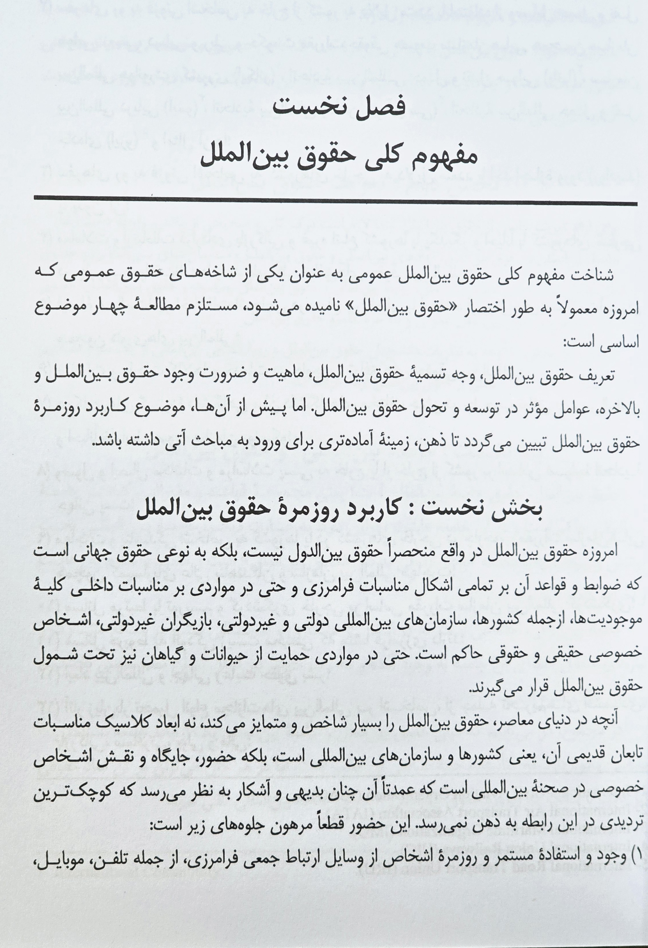 حقوق بینالملل عمومی شاخهای از علم حقوق است که به تنظیم روابط میان کشورها، سازمانهای بینالمللی و سایر بازیگران جامعه جهانی میپردازد.کتاب حقوق بینالملل عمومی از جمله منابع اصلی و مرجع دروس دانشگاهی این حوزه است و به طور گسترده در مقاطع کارشناسی و کارشناسی ارشد رشتههای حقوق بینالملل، حقوق بشر، حقوق عمومی و حقوق تجارت بینالملل مورد استفاده قرار میگیرد.ویژگی شاخص این کتاب، جامعیت علمی و نظم آموزشی مثالزدنی آن است؛ به گونهای که تمامی مباحث حقوق بینالملل از اصول کلی تا موضوعات نوین جهانی را دربرمیگیرد. نویسنده با رویکردی تحلیلی و با استفاده از تقسیمبندیهای دقیق و شمارهگذاری علمی، یادگیری مفاهیم را برای دانشجویان آسان کرده است.در این اثر، علاوه بر مباحث بنیادین، موضوعات روز و مهمی چون وضعیت حقوقی واتیکان، دیوان بینالمللی حقوق دریاها، دعوای متقابل در دیوان دادگستری بینالمللی و دیگر تحولات جدید نیز با بیانی روشن و مستند بررسی شده است.کتاب حاضر یکی از منابع اصلی آزمونهای کارشناسی ارشد و دکتری حقوق محسوب میشود و برای پژوهشگران، وکلا و علاقهمندان به مطالعات بینالمللی، منبعی قابل اعتماد و ارزشمند است.اکنون میتوانید این کتاب را از فروشگاه تخصصی دنیای وکالت تهیه کرده و با مطالعهی آن، درک عمیقتری از نظم حقوقی حاکم بر جامعه جهانی به دست آورید.