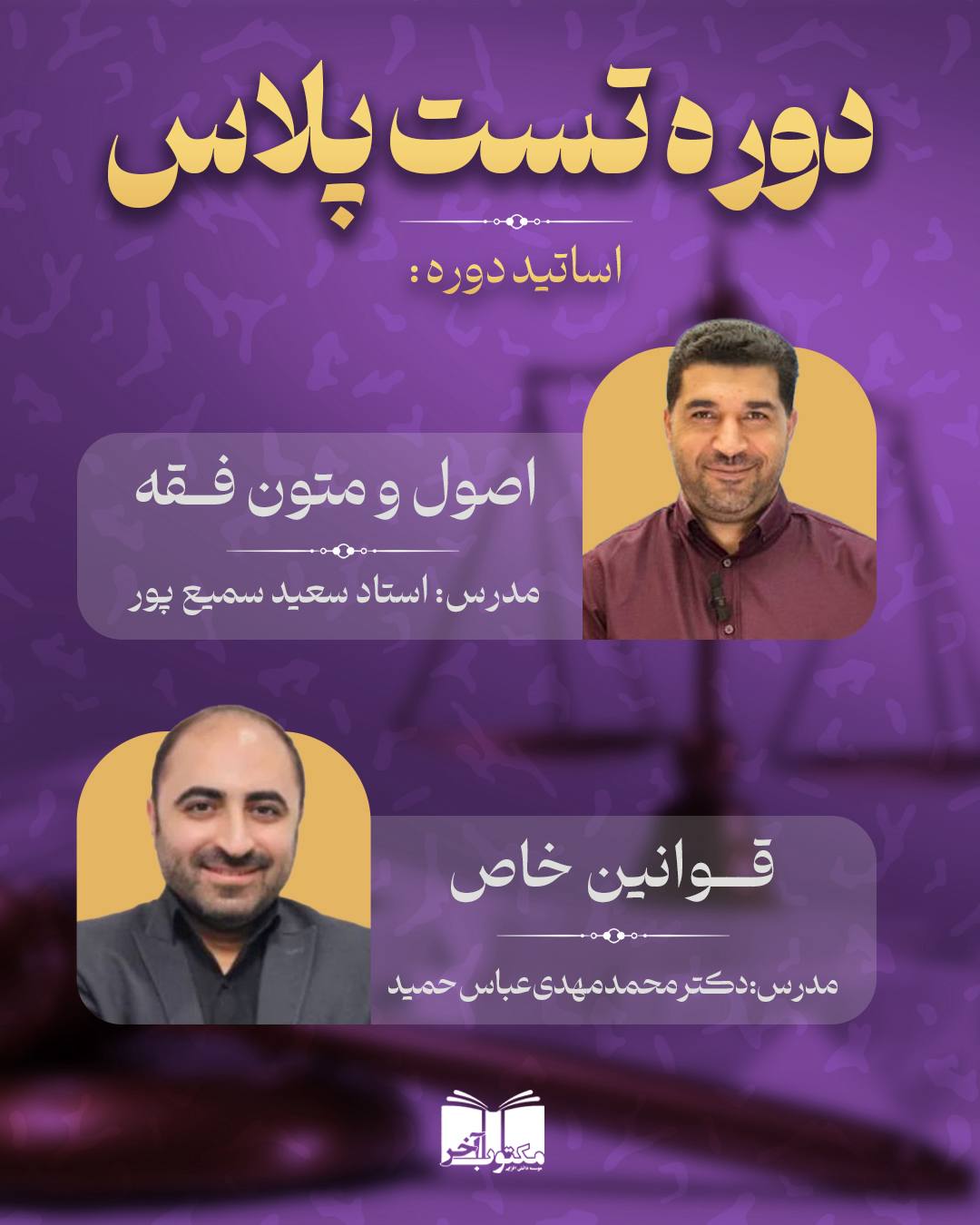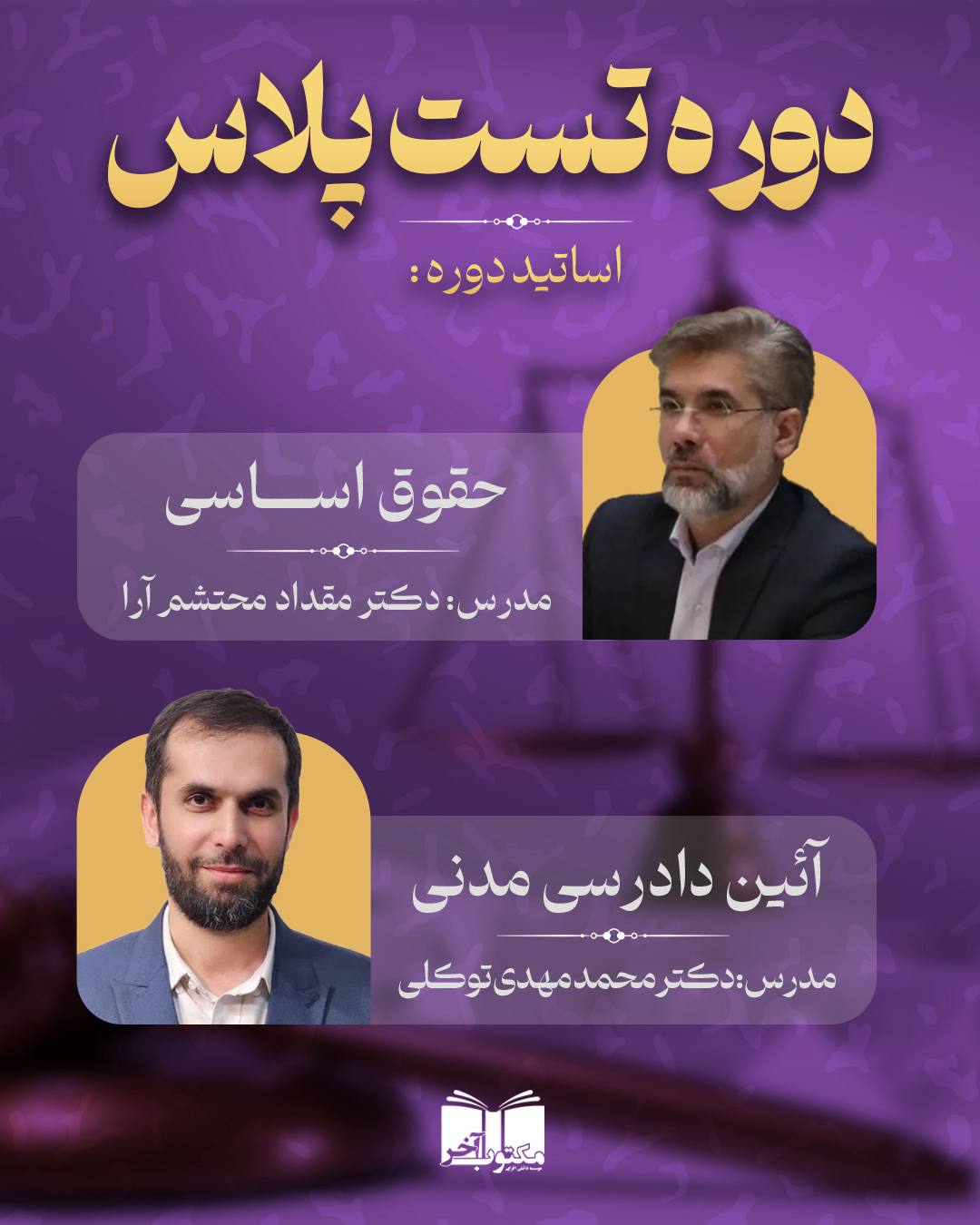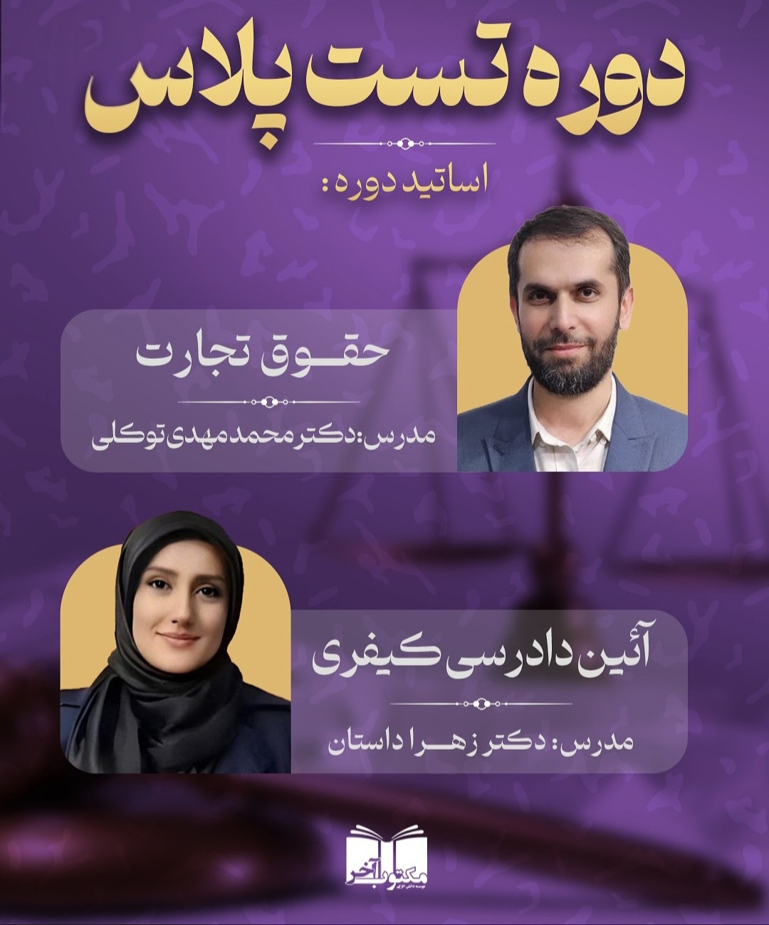 🎓 دوره جامع نکته و تست مکتوب آخر با حضور برترین اساتید حقوقی کشور، فرصتی استثنایی برای داوطلبان آزمون وکالت و قضاوت است. این دوره در ۱۹۰ ساعت آموزشی، به صورت کامل مباحث حقوق مدنی، تجارت، جزا، آیین دادرسی کیفری، اصول فقه، متون فقه، حقوق اساسی و قوانین خاص را پوشش میدهد.اساتید برجسته این دوره:حقوق مدنی و تجارت: دکتر محمدمهدی توکلی حقوق جزا: دکتر عظیمزاده آیین دادرسی کیفری: دکتر زهرا داستان اصول و متون فقه: استاد سمیعپورحقوق اساسی: دکتر محتشماراقوانین خاص: استاد عباس حمید📌 ویژگیهای دوره:پوشش جامع مباحث آزمونهای حقوقی در ۱۹۰ ساعت بررسی نکات کلیدی و تستهای پرتکرار آزمون وکالت و قضاوت مناسب برای جمعبندی دو ماه پایانی پیش از آزمون تدریس توسط اساتید برتر و نامآشنا در حوزه حقوق ارائه با تخفیف ویژه: از ۶ میلیون به ۲,۹۰۰,۰۰۰ تومان🚀 اگر فقط دو ماه تا آزمون فرصت دارید، این دوره میتواند شانس موفقیت شما را چندین برابر کند.جهت راهنمایی و ثبت نام با شماره ذیل تماس حاصل فرمایید دنیای وکالت 09038062980